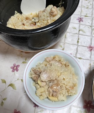 四日市万古焼の絶品ご飯(炊飯土鍋)で炊く鶏肉入りのたけのこご飯レシピ
