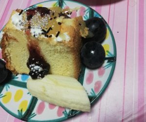 100均でシフォンケーキを子供と簡単デコレーション。チョコクリームも♪